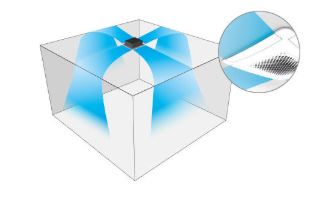 Dzięki temu rozwiązaniu zimne powietrze kieruje się ku sufitowi, rozprowadzając się w regularny i stopniowy sposób w całym pomieszczeniu, zapewniając idealny komfort klimatyczny bez nieprzyjemnych zjawisk termicznych spowodowanych bezpośrednim nadmuchem zimnego powietrza.