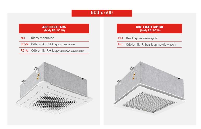 Panel przedni ABS 600x600 (RC-A) do klimakonwektora kasetonowego AIR-LIGHT+ pilot IR
