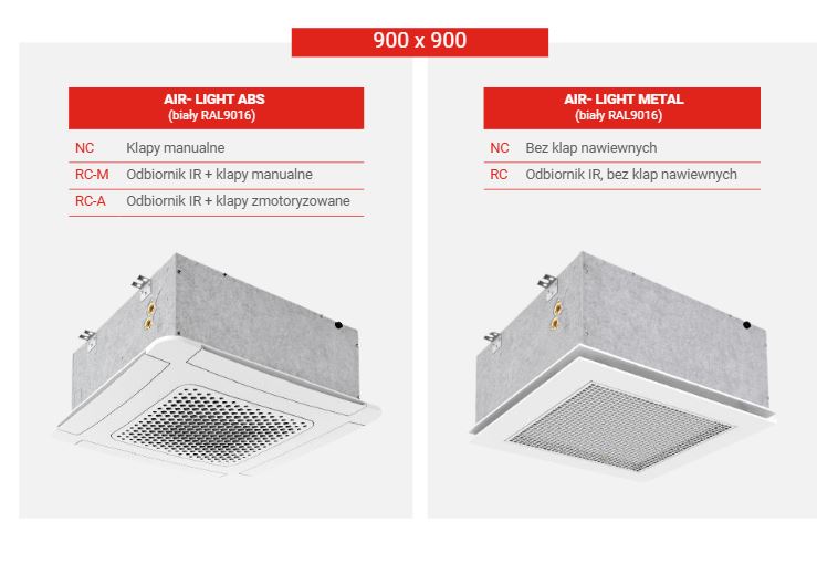 Panel przedni ABS 900x900 (RC-A) do klimakonwektora kasetonowego AIR-LIGHT+ pilot IR
