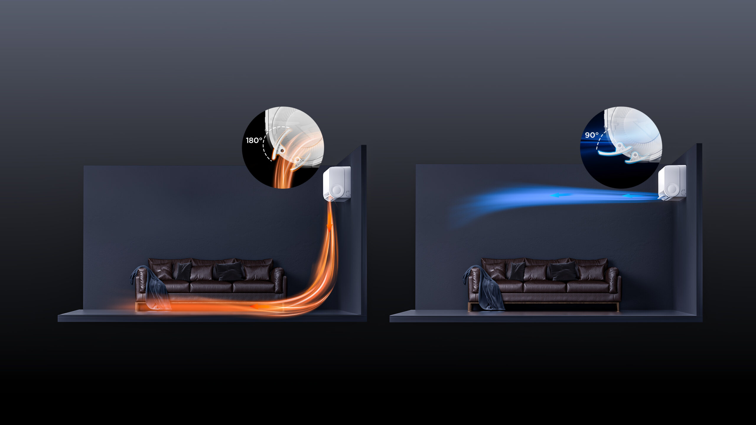 dzięki szerokiemu zakresowi działania podwójnych żaluzji, deflektor optymalizuje zarówno chłodzenie, jak i ogrzewanie, zapewniając wydajną cyrkulację powietrza w każdym zakątku pomieszczenia.